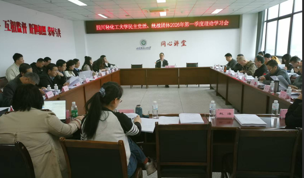 为深入学习贯彻全国两会精神,全面落实各级统战工作部署,进一步凝聚统一战线思想共识,3月25日下午,学校民主党派、统战团体2026年第一季度理论学习会在汇东校区第四实验楼党派之家召开。全校各民主党派主委、副主委、委员,知联会会长、副会长、秘书长,党外各级人大代表、政协委员,侨联代表,党外处级干部、青年代表及统战部全体成员参加会议。会议由学校党委常委、统战部部长罗毅主持。